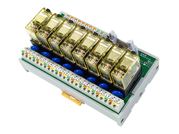 ④ 栅栏式端子输出 ⑤4路继电器模组,体积减小到最小⑥ 采用LED动作显示,各输入输出端状态 一目了然